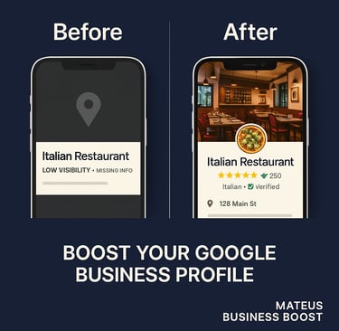 At Mateus Business Boost, we specialize in optimizing Google Business Profiles to help companies stand out on Google Maps, attract more customers, and increase revenue.